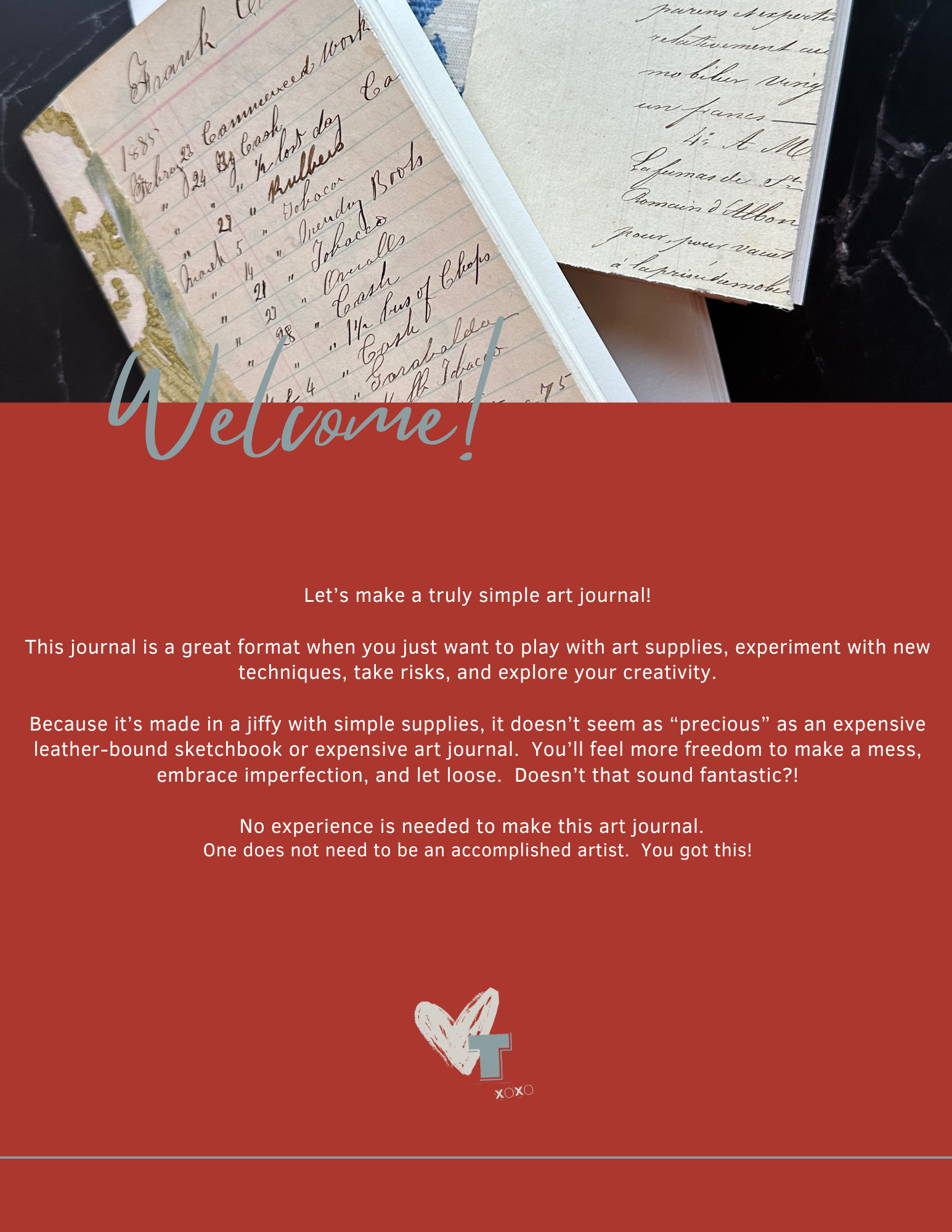 Part practical guide, part creative cheerleader, this workbook helps you gather your supplies, set up your creative sanctuary, loosen your inner critic, and begin making pages that feel alive with color, story, and joyful imperfection.